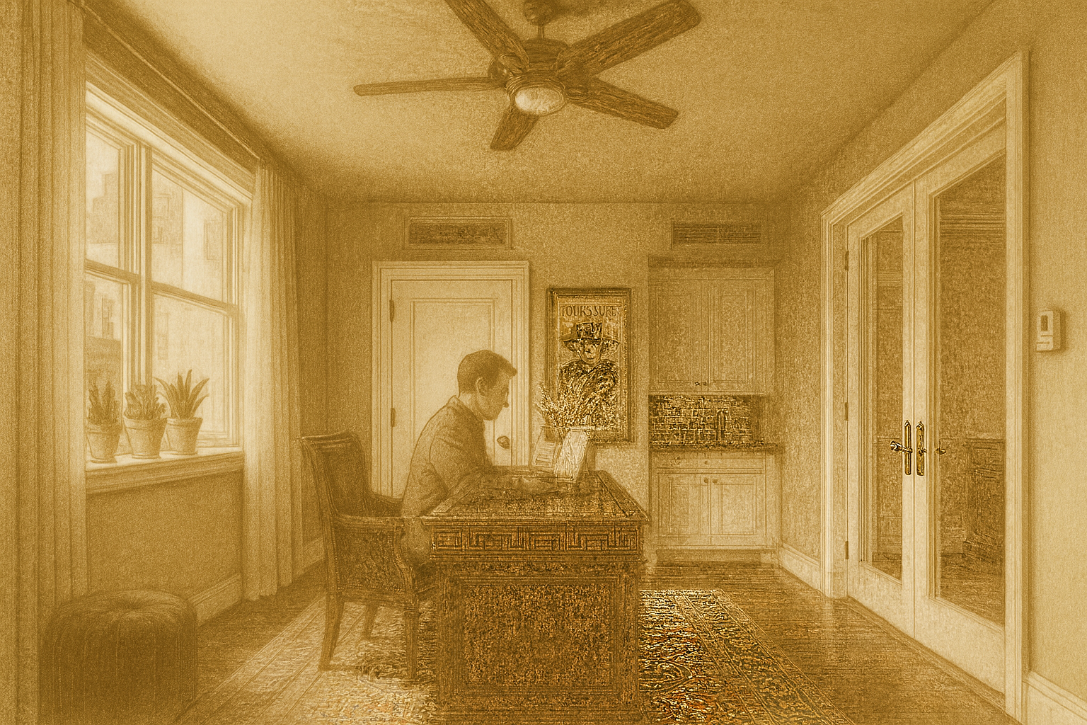 As afternoon light filters across the floor, the home quiets into a song. In one room, the steady rhythm of keystrokes fills the air, focus and intent shaping the hours. In another, laughter rises softly from the sofa where brothers lean toward a glowing screen, lost in shared play. Here, work and rest exist in easy balance: the march of a day well-lived, the quiet companionship of home unfolding across its many rooms.